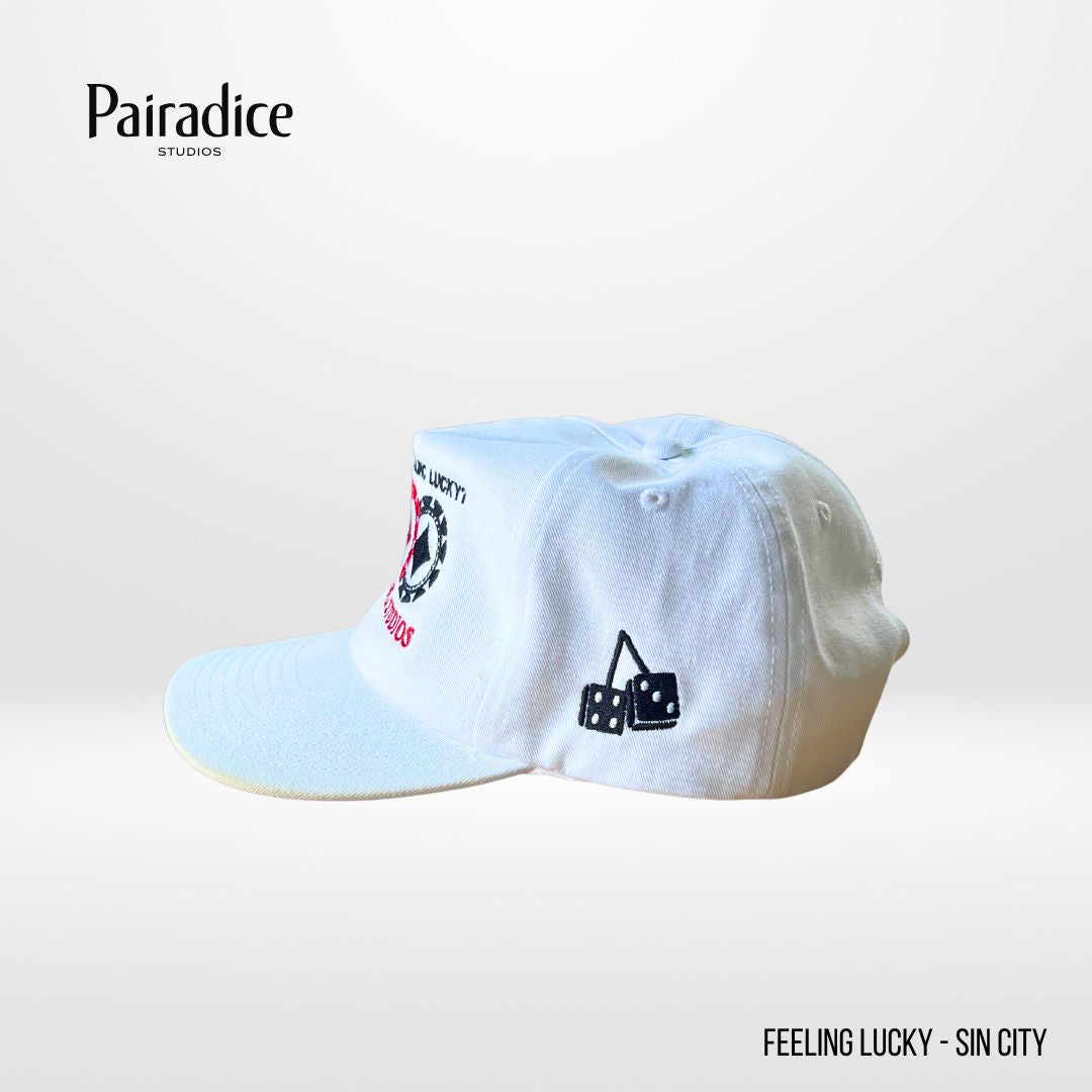 The "Feeling Lucky Snapback" brings a vintage Vegas vibe to the table with a throwback fit and casino-inspired detailing. Featuring embroidered chips, bold text, and a clean white build, this cap channels old-school Sin City energy.
